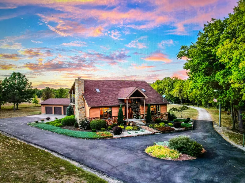 Conveniently located between Yates Center, Ks, and Iola, KS sits this custom home with extensive hand-crafted wood beams and vaulted ceilings. Once you arrive at the four-bedroom, 3 1/2 bath home, which sits at the end of a long-paved driveway, you'll first appreciate the extensive and well-maintained landscaping all around the house. The focal points of the home's interior are the oversized floor-to-ceiling stone fireplace and custom staircase leading to the second floor. Many of the walls and ceilings are either wood or custom painted. The balcony off the second-floor main bedroom provides tremendous views of the property and beautiful sunsets in the evening. The material used for the balcony floor is synthetic wood and appears to be in near new condition. The kitchen has been recently updated with new countertops and backsplash. The entire home is in fantastic shape. It's almost hard to explain how clean and well-built the house is. The three-car garage provides plenty of space for vehicles, ATVs, and other equipment.As impressive as the home is, the property is equally as impressive. Currently, around 60 high-fenced acres are used to contain the owner's elk herd. I think the Elk are more for enjoyment, although there can also be a commercial element to the operation. The Elk are negotiable but not included in the asking price. The land is made up of creek bottom timber, mature cedars, and open grassland, which feeds the Elk. Even during the drought, the area is experiencing, two main ponds have ample water for the animals. If one chose to remove the elk and game fence, the property would surely be an outstanding deer and turkey hunting farm. Of the existing pasture ground, there are approximately 30 acres of Class 2 and 3 silt loam soils that could be converted to crop ground and provide some nice income as well.This is a must-see if you're in the market for your dream home away from the city or an amazing hunting lodge.