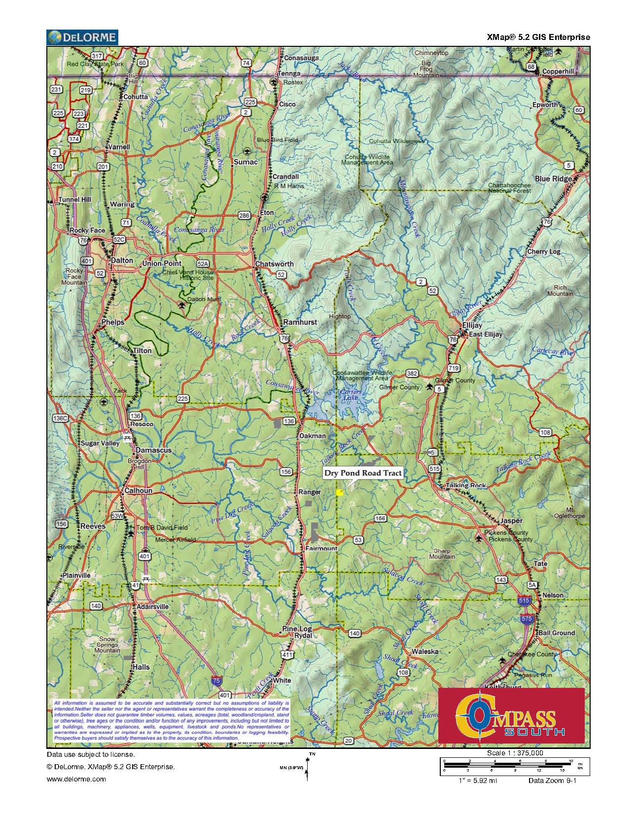 Dry Pond Road Tract is located in Pickens County approximately five miles NE of Fairmount and seven miles west of Talking Rock on Gordon/ Pickens County Line. There is double frontage on Dry Pond Road. Established internal gravels roads allow for easy access to many portions of the property. The property has a large amount of pine plantations on it with the balance in hardwood. Merchantable timber provides the opportunity for current income while the premerchantable timber has the opportunity to become future income for the buyer.