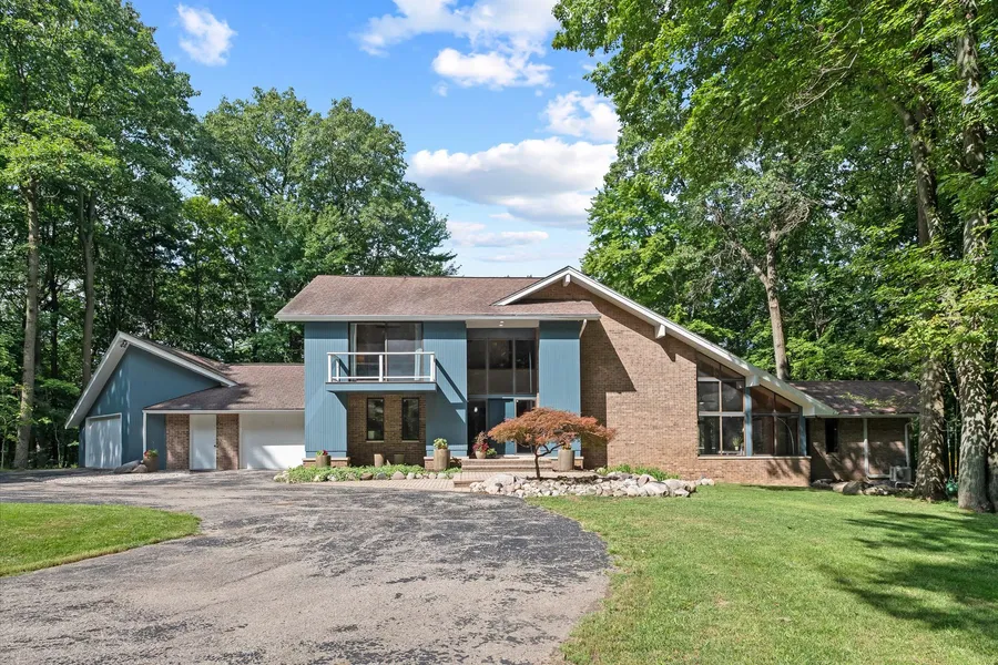 Escape to your own private oasis with this Mid-Century Modern masterpiece, perfectly nestled on 12.1 acres of pristine hardwoods. Offering complete privacy without sacrificing convenience, this property provides a true country retreat just minutes from town—without any dirt roads. A meandering driveway winds through lush forest, revealing an architectural gem that blends sleek Mid-Century Modern design with the tranquility of nature. Step inside to soaring vaulted ceilings, expansive windows, and open living spaces that invite the outdoors in. A dramatic wall of glass frames the woodland scenery, while a central fireplace creates a warm and inviting atmosphere. The updated kitchen is a chef’s delight, featuring modern cabinetry, clean lines, and an open layout ideal for entertaining. Recent improvements include new flooring throughout, fresh interior and exterior paint, upgraded lighting...