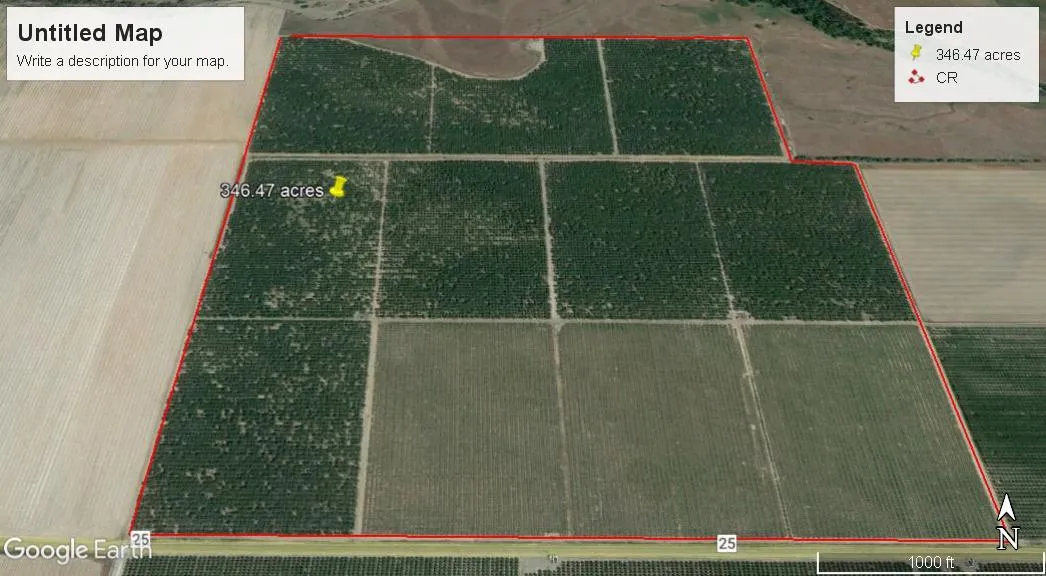 346 gross acres with 320 acres M/L planted to almonds. 240 acres M/L planted in 1996. 79 acres M/L planted in 2019. Water is supplied by 3 wells (2 electric 1 diesel) and the south parcels are in the Orland Artois Water District. Two wells have 125 HP electric turbines, and one well has a 200 HP gear head with diesel engine. Irrigation is via micro-jet sprinklers.
