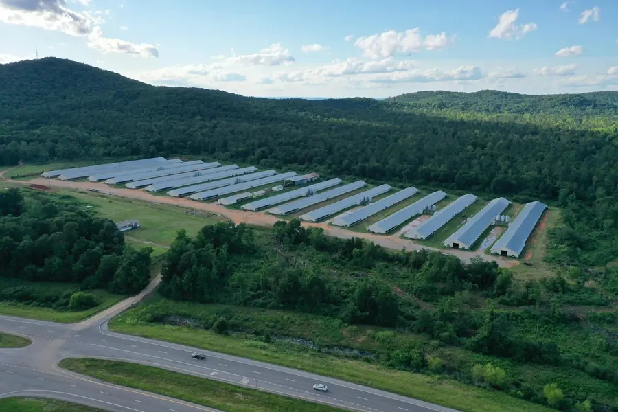 The Duc Broiler Farm is a 16 house farm located in Talladega, Alabama. The farm has 12 40x500 houses built in 2004 and 4 43x510 built in 2012. The farm grows for Koch Foods Ashland Complex raising a 6lb bird. This farm is so close to the feed mill you can see the mill from the farm. The farm has 70+/- acres, a doublewide mobile home, and a singlewide mobile home. 2024 gross annual income was $970,000.