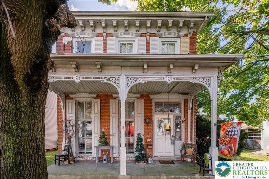 This solid brick duplex is ready for it's new owner! This property is perfect for living in one unit and renting the other for additional income or to be close to family. The front unit is a beautifully maintained brick Victorian style home. As you enter you will immediately notice the formal foyer with original mahogany staircase leading you to a large living room with high, beamed ceilings, tall windows, and a charming brick wall. Step into a formal dining room with original hardwood floors continue into the cozy country kitchen with a brick fireplace and built-in range top and wall oven. A large pantry and laundry/mudroom complete the first floor. Upstairs, find a master bedroom with access to a covered side porch, plus 3 additional bedrooms and a full bath. A partially finished basement adds extra living space with a 15x18 family room and plenty of storage in the basement and attic....