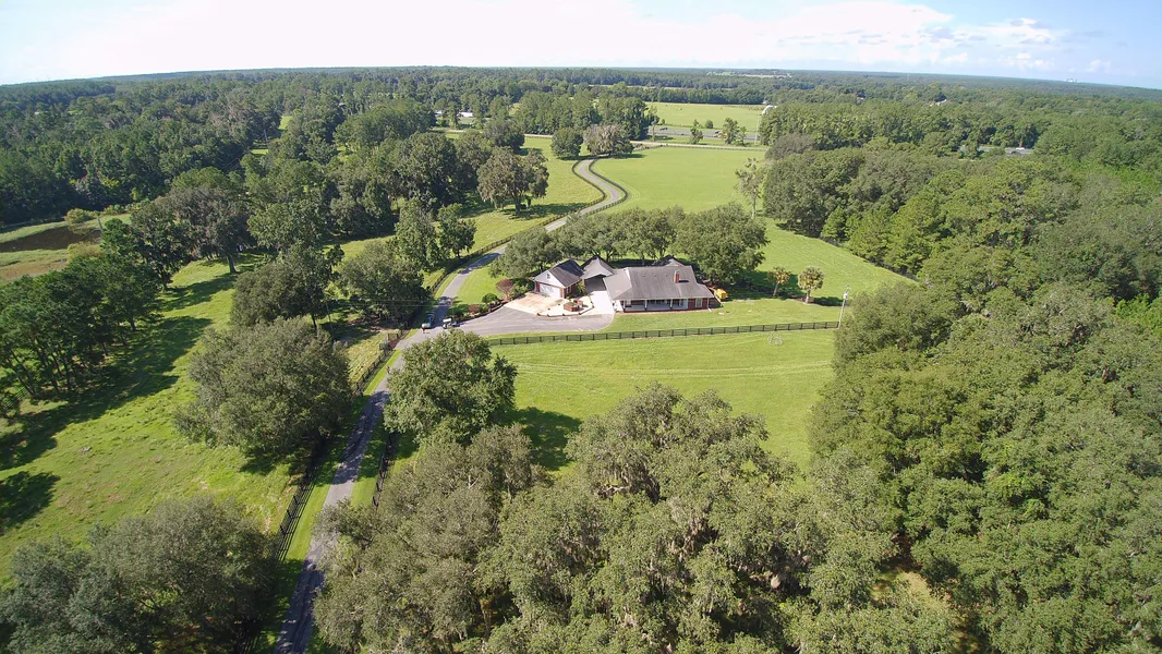 One of a Kind Gorgeous Alachua Estate! Majestic Grandaddy Oaks, Rolling Plush Green improved pasture, Executive Home on a hill, & quiet serene pond. Property Borders 7000 acre San Felasco Preserve with its miles of hiking, biking, & horseback trails. Not to mention the deer, turkey and other native wildlife! Classy Ranch w/Black Iron security gate at entrance, Black Board Fence, asphalt driveway that meanders through scenic property, Cross fenced w/4 large irrigated paddocks. Norwegian Brick home overlooking entire acreage, w/oversized 2 car garage w/upstairs Bonus RM. Located at back of property a 3000 SF 2-story metal building complete (w/AC, well insulated, 2 electric 15' bay doors, semi-dock, upstairs office, & separate work shop); 1998 SF hay barn w/3 stalls, small corral, & 915 SF original train depot wood building. The main house offers open floor plan, raised ceilings, w/great ro...