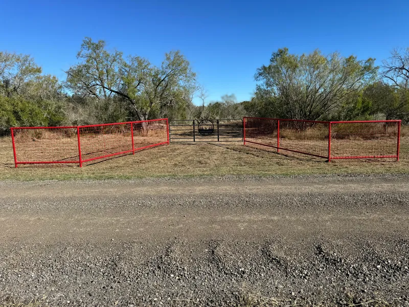 The Red Gate Ranch is an unrestricted 25.02 in Jourdanton, Texas, with a new earth pond.