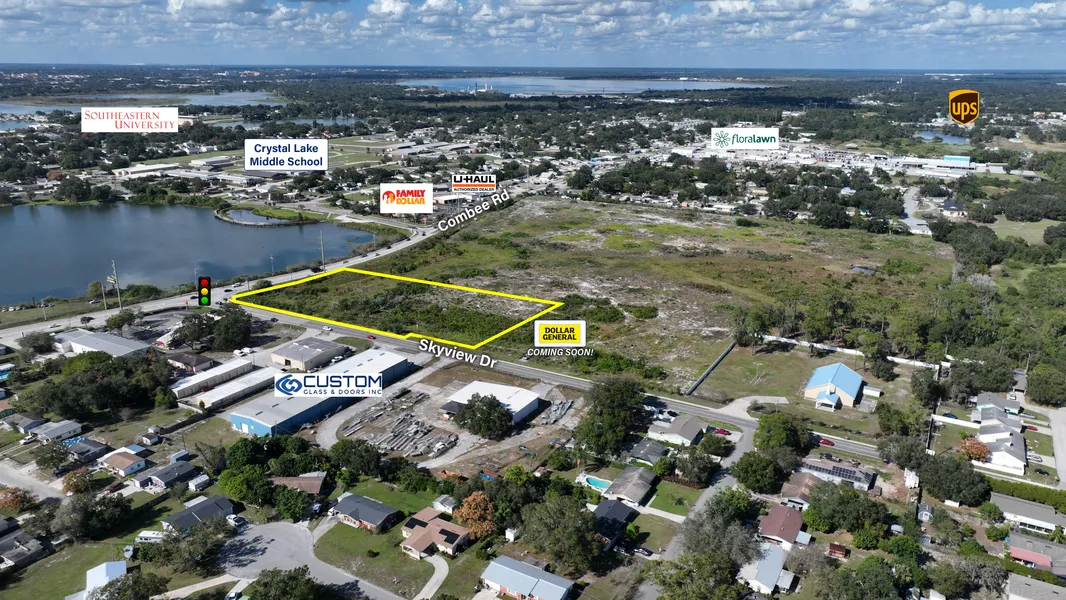 Introducing a prime investment opportunity in the heart of Lakeland, FL! This exceptional 3.21-acre parcel is situated at the signalized corner of Combee Rd and Skyview Dr, making it a strategic location with high visibility. Combee Rd, a bustling neighborhood artery, witnesses an impressive 18,500 cars passing through daily, ensuring your business will have maximum exposure. What sets this property apart is its rarity corner lots of this size at such a strategic location are a scarce find in the immediate market. Don't miss out on this unique chance to secure your place in the thriving Lakeland commercial landscape.