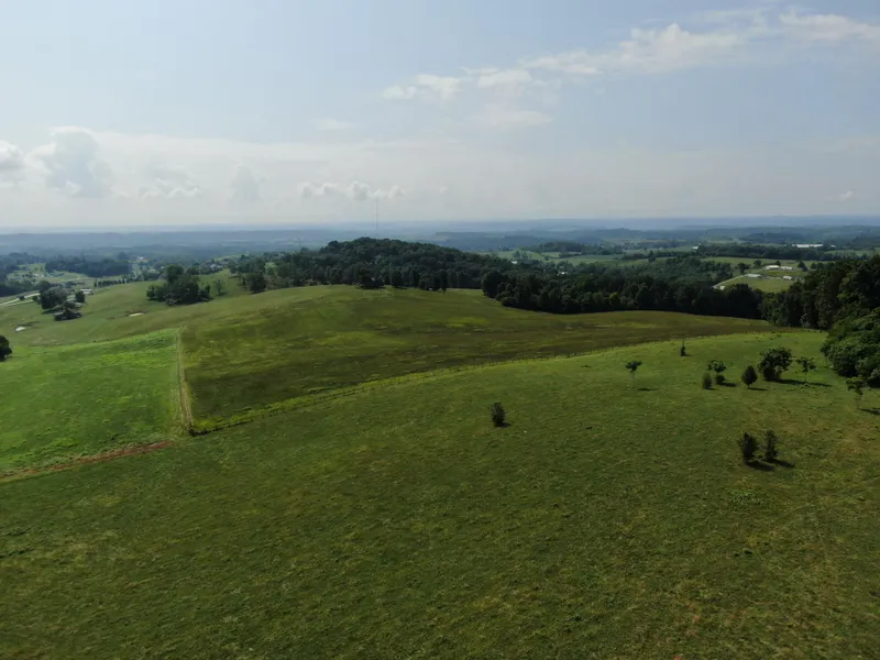 In the Russellville community of Hamblen County, Tennessee lays one hundred and ten acres of unrestricted, mostly cleared pasture, hayfields, with a small area of woods. This farm offers two barns, ponds, a spring, well, and automatic water system. The property is mainly gently rolling. There are excellent 360 degree East Tennessee Mountain views from numerous areas of the farm.