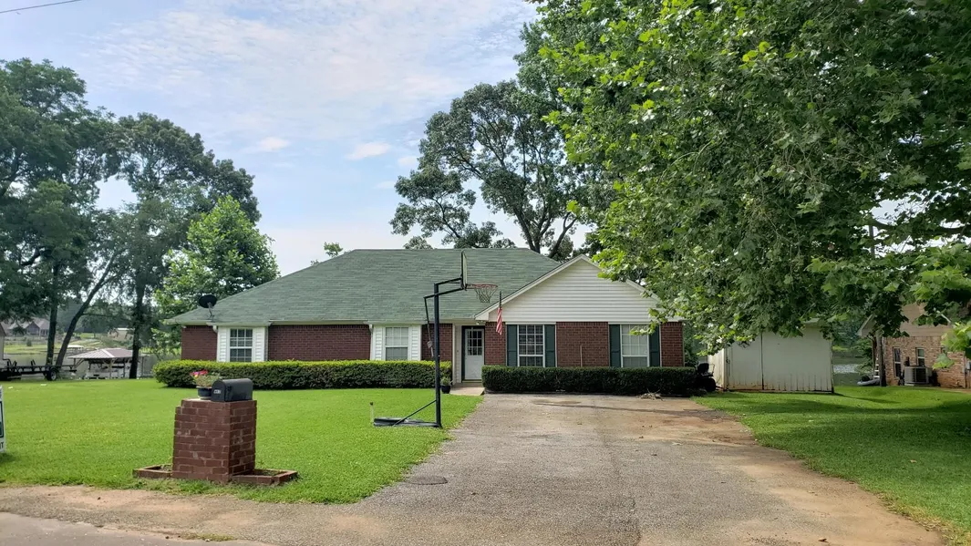 Peaceful lake living can be yours at a reasonable price on beautiful Lake Palestine near Tyler Texas! Make your home on this beautiful east Texas lake, just 1.5. hours from Dallas TX and 3+ hours from Austin and Houston. Built in 1997 on .3 acre lot (above 355' elevation) with 1980 sq. ft., this 5 bedroom, 3 bath 1 story home easily houses aging parents or adult children with privacy for all. Master bedroom/bath and 2 guest bedrooms & guest bath occupy one side of home with 2 add'l guest bedrooms & 1 guest bath off kitchen area. Open living/dining/kitchen overlooks lake & level yard. This well maintained home is all electric with attractive scored concrete & carpet flooring. Wander out to the covered back porch or open patio to enjoy the natural beauty of this area, facing south over the lake. Approx. 129' of shoreline on serene bay with DEEP water no worries that droughts will prevent lake access! Seller has lived on this lot all her life and says great neighbors surround you. Aerobic septic, asphalt driveway, 8 x 12 storage building complete this lakefront package. Bullard school district.