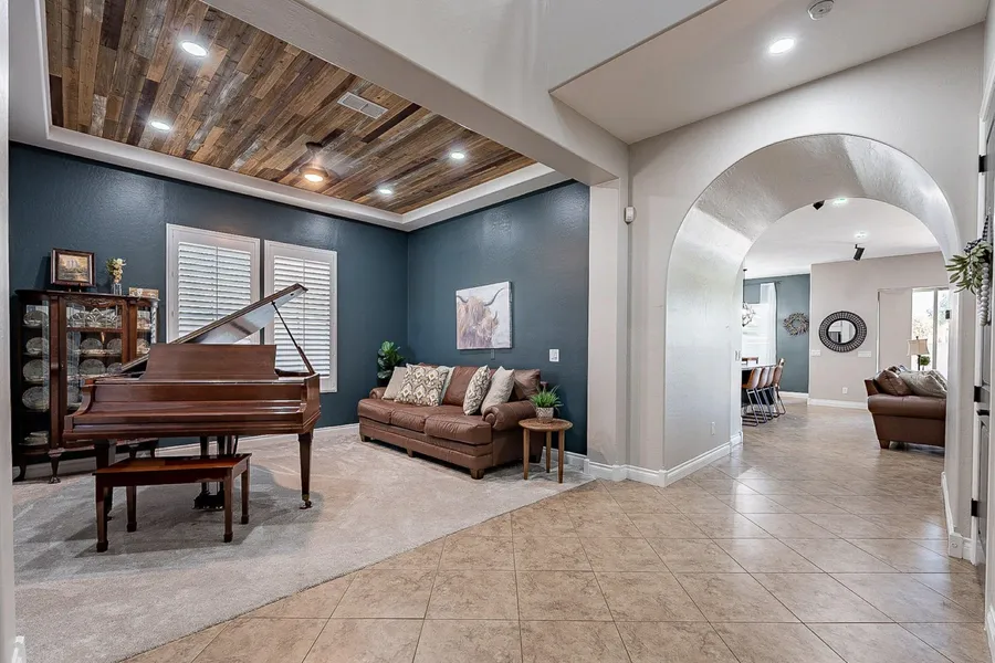 Spacious 5397sqft Eastmark home setting on a 12,549 sqft lot, one of the largest in Eastmark! This well appointed home offers 6 beds, 4.5 baths and 2 additional rooms at the lower level that could be utilized as added bedrooms or office space. The Owners suite is located on the lower level and has had the massive owners bath area separated from the bed area for added comfort and privacy. The kitchen includes an in-wall oven as well as a new dishwasher, new cooktop, new in-wall convection microwave oven, massive kitchen island, granite surfaces, tiled backsplash with hidden outlets. You'll appreciate the 11' multi-slider door leading to a large backyard perfect for relaxation and entertaining, which includes a 25K gallon private pool. The upstairs area includes a theater room, a large loft, and 5 bedrooms. Four of these bedrooms have a "Jack and Jill" bath arrangement connecting them, for convenient shared use. Additional upgrades include upstairs and downstairs laundry rooms, shutters in the formal living area, new carpet & new paint throughout done within the past year. Paint included walls, ceilings, doors and trim, upgraded lighting throughout, ceiling fans, and aftermarket recessed LED lighting at the loft area and a multitude of storage throughout the home, Smart entry keypad knob & security doorbell. Other features include a 4-car garage electrical upgrades, including pre-wiring for a car charger, piped compressor & an evap cooler in the garage. Eastmark offers a First-Class Community Center call "The Mark" which offers an arcade and other family fun, along with other entertainment areas such as multiple parks, a community heated pool and children's pool and a multitude of gathering spaces. The home is conveniently situated with close proximity to the 24, 60 & 202 fwys as well as Gateway Airport, Bell Bank Ballpark, shopping, dining and other amenities.