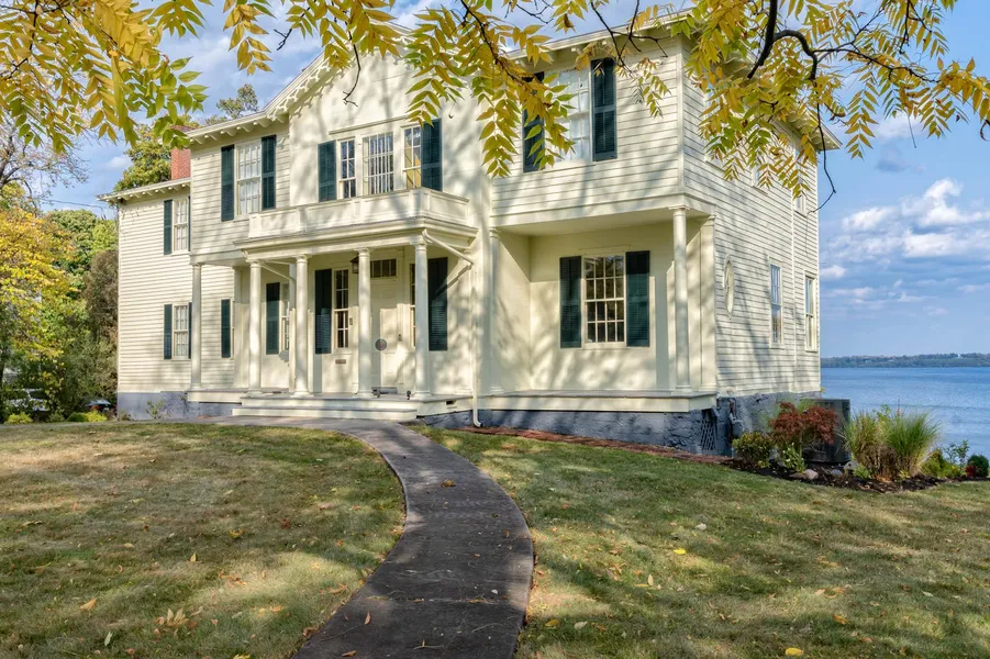 The eclectic "CUTBUSH" house perched high on the west bank overlooking Seneca Lake with 186 of lake frontage. Built around 1830 by Edward Cutbush ,MD the first Dean of the Geneva Medical College, designed to have lake views from every room. Entering through the front door there are immediate views of the lake through large windows and french doors. Enjoy the views from large open porches on each level with direct access from the Kitchen, Great room and Bedrooms. Home offers the original charm and character of high ceilings, grand woodwork throughout , multiple fireplaces, Master Suite , a modern kitchen with quartz counters , updated baths, and second floor laundry. The 1074 sqft finished lower level can be utilized for an array of uses from an in-law suite to a home based business with private exterior access, and of course views of the lake.