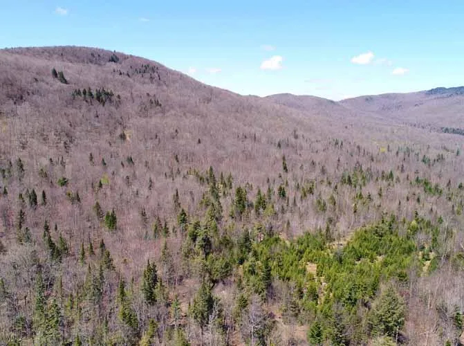 Sugarbush opportunity with 52,400 potential taps from stems 9 and greater on east-facing slopes with good sap-flow conditions to power and access locations;