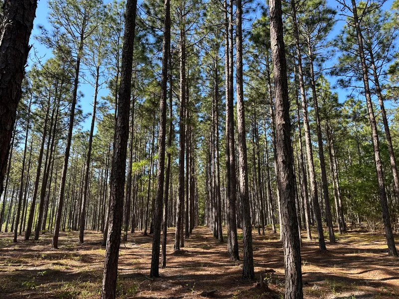 There are approximately 20 acres of one year old longleaf and the balance is mature longleaf being raked for straw with intermittent hardwoods.