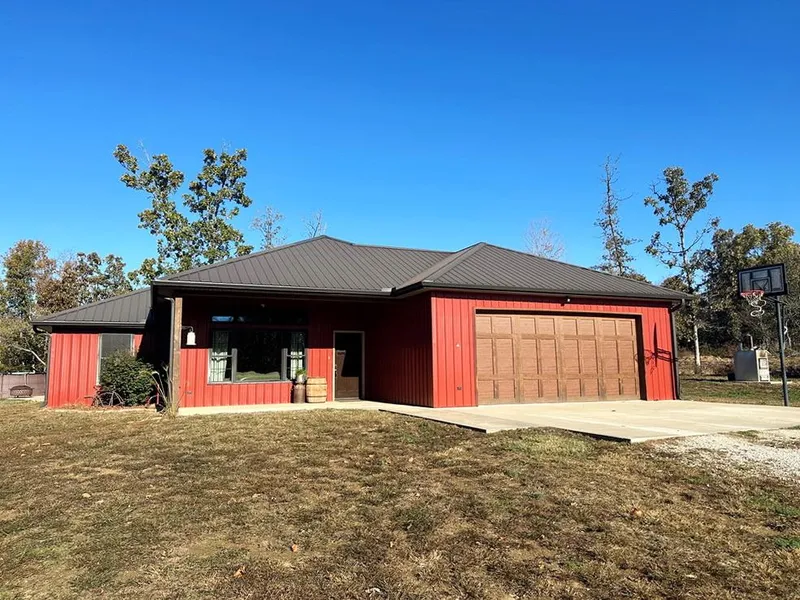 Newer Country Home on 41 Acres with Outbuilding- For sale in Vernon County, Missouri, just southwest of El Dorado springs is an attractive modern farmhouse that is nestled in a perfectly secluded setting. The 3/8-mile driveway is owned by the seller and winds back to the residential setting. The 3 bed, 2.5 bath home is appealing inside and out, featuring 1,820 sq ft of living space. The inside features 10 ceilings in the living room, a free-standing wood stove, attractive hearth and mantel space, great sightlines through multiple windows, and an open kitchen concept. The kitchen boasts custom cabinetry, soft-close doors and drawers, 4-person bar seating, eat-in table space, lazy Susan and more. Other outstanding interior features includes LED lighting, tile floors in bathrooms, central heat/air supplemented by an outdoor Hardy wood furnace, custom window blinds, attic fan, jetted whirlpool tub in master suite, large master closet, and a finished 22x26 2-car garage space. Enjoy sunrises and sunsets on the covered front and back porches which are great in all seasons. Other improvements include an in-ground storm shelter, a lean-to for firewood storage, frost free hydrants, automatic livestock waterer, garden spot, fruit trees, chicken coop and run, 500 drilled well, and a newer 1,600 sq ft pole barn with a 10x40 lean to. The balance of the property is perimeter fenced and mostly wooded with 5-6 open acres and trail improvements throughout. This is the perfect property for hunting/recreation (see attached deer pictures) or run a few livestock animals. Theres not a better location to be self-sustaining and live the country lifestyle that you have always dreamed of. As a huge bonus, Conexon fiber internet is now available at this location and is currently on the property! Call today for a private tour. This is the place you will fall in love with.