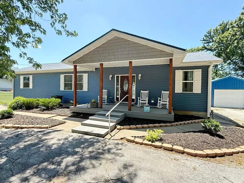 Convenience, Location, & Style- thats what is offered in this like-new home just outside of El Dorado Springs, MO. This modern home was built in 2022 and is completed inside and out with top-end and low-maintenance finishes that will bring lasting comfort. With 1,490 sq ft on the main level and another 1,104 sq ft in the unfinished basement, this home provides abundant space and room to grow. The center of the home is an open living, dining, kitchen area featuring nice, vaulted ceilings, great lighting, and excellent functionality. The kitchen features beautiful cabinetry, granite countertops, a kitchen island, stainless appliances, and custom lighting. A walk-in pantry provides essential storage and convenience. The ranch style home features 3 bedrooms and 2 bathrooms; bedrooms have a split design providing privacy...