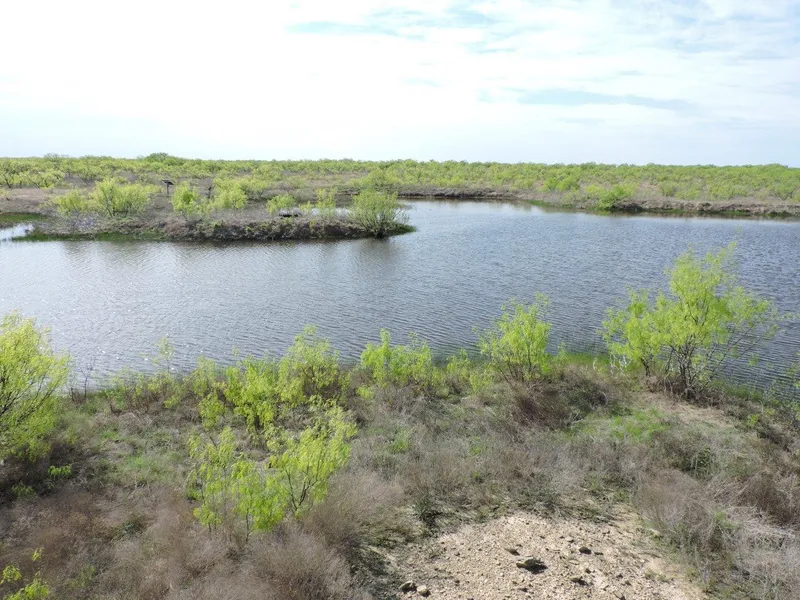 Terrain: The Lodge Creek Ranch is a phenomenal hunting and recreational property located in large ranch country, is extremely diverse, and has lots to offer. The location of the ranch is very important because it is in the transition area from mesquite to post oaks and offers flat to more elevation and has the beauty of the hardwood trees as well as the cover and growing qualities from mesquite country. The terrain is primarily rolling, but in some areas there are more dramatic elevation changes with rock outcroppings and heavy hardwood timber. The north and west sides of the ranch are mostly comprised of heavy bull mesquite thickets which provide excellent cover and canopy with a few clearings throughout. During the cold days of the year when food plots are planted in winter wheat, it is possible to view over 100 deer on the ranch. Whitetail deer in this area are known to range in the 130-180 range! The eastern and southern sides of the ranch are mostly covered in heavy Post Oaks and scattered Hackberry trees. These parts of the ranch are rolling and full of color from the beautiful trees. The large oaks are perfect for bow hunting setups and also for natural turkey roosts. Both food plots of the ranch are huge deer magnets and come alive near sunrise and sunset! Lodge Creek, a winding, rock-lined wet weather creek traverses the southeast portion of the ranch and only runs after rainfall for a few days. Several senderos along the creek were previously cut to provide shooting lanes in the dense areas and for viewing wildlife. There are also several pools of water that provide an additional water source for wildlife and cattle mostly year-round. One of the greatest attributes of the Lodge Creek Ranch besides the great hunting is the beautiful ponds and the fishing!