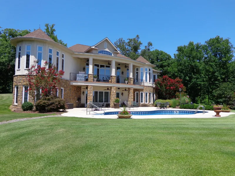 ELEGANCE AT ITS FINEST! Walk in and you will be stunned by beautiful hardwoods and sophisticated design. 18ft Vaulted ceilings & fireplace in living room. Custom kitchen with granite counter tops, breakfast bar, prep sink, and more. Formal dining room, library, and office on main level. Surround sound throughout. Beautiful master suite with his/her walk in closet, tile shower, and garden tub. Lower level is as mesmerizing as well with its own master suite, 2 bedrooms w/ jack & jill bath, 30x17IRR storage room , 5x9 safe room, and den with walkout access to gorgeous inground pool & outdoor fire place. Stocked 9 acre lake and 20x40 detached garage. All situated on this 28.4 +/- acre paradise.
