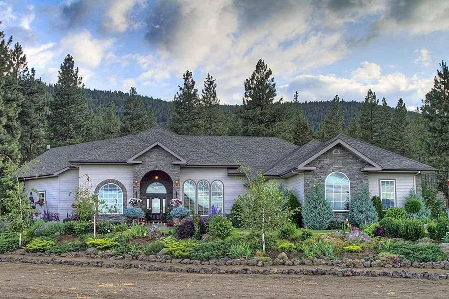 STUNNING HOME backed by manicured pine forest and buffered with 30 acres of green irrigated pastures! Meticulously designed Mediterranean style home with Dramatic Stone and Dark Cherry Wood, Beveled Cut Glass front door 14 ceilings, 10 foot doors, crown moldings, chair railings and French doorsseller spared no expense here! Private covered patio, elaborate formal dining & living rooms as well as outstanding kitchen, island, eating bar opening to wonderful living space, double rock fireplace. Every window enjoys masterful landscaping and peaceful beautiful valley views. Great insulated 3 car garage attached and historic small barn & poultry houseand so much more!