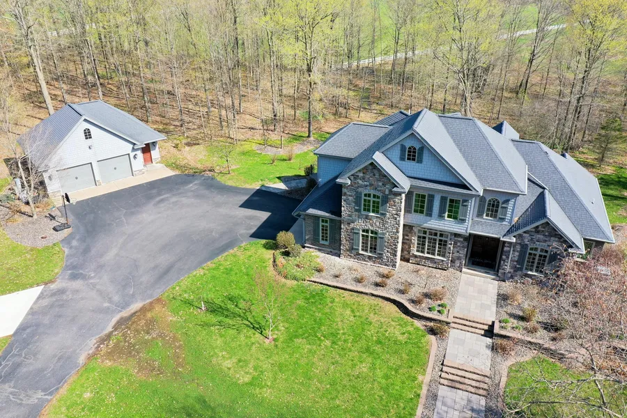 Stately 5+ bedroom, 4.5 bath custom built home situated on 32.2 country acres. Completely secluded retreat located just southeast of Medford and borders the Black River Golf Course. Open concept kitchen/dining/sitting room. Kitchen with center island, breakfast bar and walk-in pantry. Living room with gas fireplace and vaulted ceiling. Tons of natural lighting throughout. Foyer area with double front doors and main level private office. Main level master suite with trayed ceiling, in floor heat, private bath with double sinks, shower, stained glass, jetted tub and large walk-in closet. Upper level with loft, second master suite and two additional bedrooms with walk-in closets and full bathroom. Lower-level walk out with in floor heat, 10 ft. ceilings, family/rec room, guest bedroom with walk-in closet, guest bath with jetted tub, exercise room, bonus rooms and plenty of storage room area. Additional amenities include: quartz counters, impact windows, solid mahogany doors, maple hardwood floors, Kohler fixtures, built in surround sound system, second kitchen with dishwasher, oven and refrigerator. With over 5,353 sq. ft. this home has had thought and love put into every detail. Exterior with deck and lower level patio areas. Heated attached and detached garages. The land features a well developed trail system through the impressive hardwoods, contour, pastures/field areas, fencing, wildlife pond and 1,025 feet of frontage on the Black River. Located 35 miles from Marshfield and 48 miles from Wausau. The Bosch custom panel 36 refrigerator, Bosch custom panel 24 freezer, Bosch Dishwasher, Bosch Microwave and laundry room appliances, Maytag washer/dryer, Maytag dishwasher, Maytag refrigerator/freezer, water softener, wood window shutters, treatments in the living and family rooms are all included in the sales price.