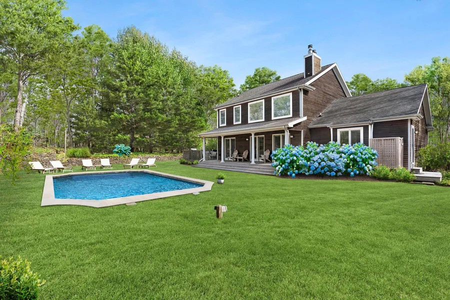 Just listed, move-in ready for summer! This turnkey 4 Bedroom plus 4.5 Bath home offers so much at $2,495,000. The 4,800 sq.ft. home (3,600 sq.ft. above, plus 1,200 sq.ft. below) sits on a lush, landscaped half-acre lot in a serene Southampton setting. The property blends Hamptons charm with modern convenience, featuring mature gardens, a heated saltwater pool, and a covered porch ideal for entertaining and outdoor living. Inside, a double height foyer opens to a sun-drenched great room with soaring ceilings and a wood-burning fireplace. Multiple sets of French-doors open to an oversized deck overlooking the pool and an outdoor dining area. The main floor seamlessly connects a formal dining room to a chef's kitchen with breakfast bar and additional breakfast nook -- perfect for indoor-outdoor dining. A standout feature is the expansive 1st floor primary suite, complete with two walk-in closets, a spa-inspired bathroom (soaking tub, glass-enclosed shower, heated floors), and private access to an outdoor shower and backyard oasis. Rounding out the first floor is a laundry/mudroom, powder room and attached 2-car garage. Upstairs, three spacious bedrooms include two ensuite options, each designed for comfort and privacy. The finished lower level adds versatility with a home gym and additional living/entertainment spaces. As an added bonus, there is egress for a potential 5th bedroom if one desired. Notable amenities include hardwood flooring throughout, central air conditioning, a central vacuum system and whole-house water filtration system. Set on a quiet street, this home offers a tranquil retreat while remaining moments from Southampton Village's vibrant dining, shopping, and coastal attractions.