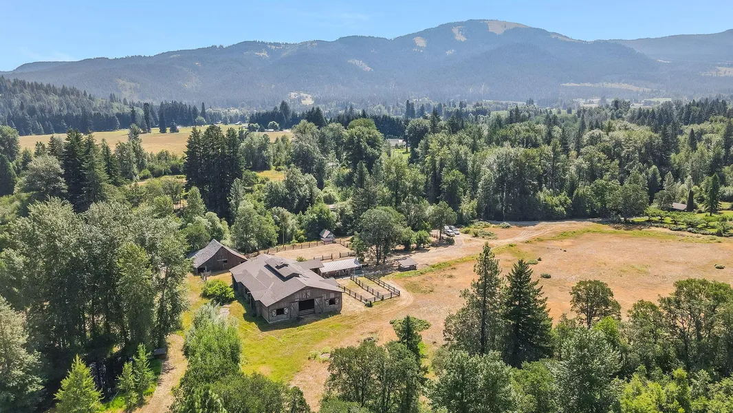Consisting of two separate and adjoining tax lots that are in the process of being partitioned, the main residence, swimming pool, pool house, and two-stall horse shed are located on the 45-acre parcel. The 1,300 square foot 2 bed/1bath guest home, 8,400 sqft covered riding arena, 3,200 sqft historic hay barn, 1,200 sqft four-stall horse barn and tack room, machine shop with garage, and chicken coop are on an adjoining 9-acre tax lot but is totally self-contained with water, power, and septic.