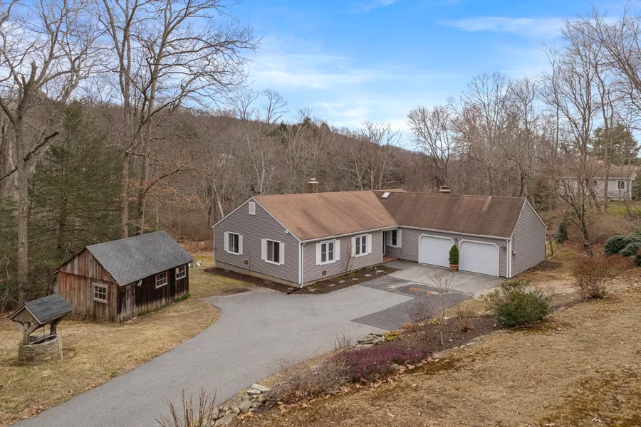 Embrace Casual Living and Style in East Lyme - Nestled in the Flanders area of East Lyme, just a stone's throw from the lush fairways of Cedar Ridge Golf Course, this turn-key ranch offers a harmonious blend of comfort and modern living. Set on a generous 1.56-acre lot, this home provides an idyllic setting for both privacy and entertainment. Step inside to discover a home where every update has been thoughtfully executed. The heart of the home is the inviting kitchen, which opens to a versatile family room, complete with a cozy fireplace, chic dry bar, and a bay window that bathes the space in natural light. Whether it's a casual meal or a relaxing evening, this room adapts to your every need. Entertain in style with the dining room's sliders revealing an expansive 44'x25' deck, featuring its own bar - the perfect backdrop for gatherings or quiet star-lit nights. The private backyard in...