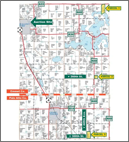 Parcel 2 - 40 acres, m/l, located approx. 7 miles SE of Wallingford, IA on the NE corner of the 260th St. at Co. Rd. N40 intersection.