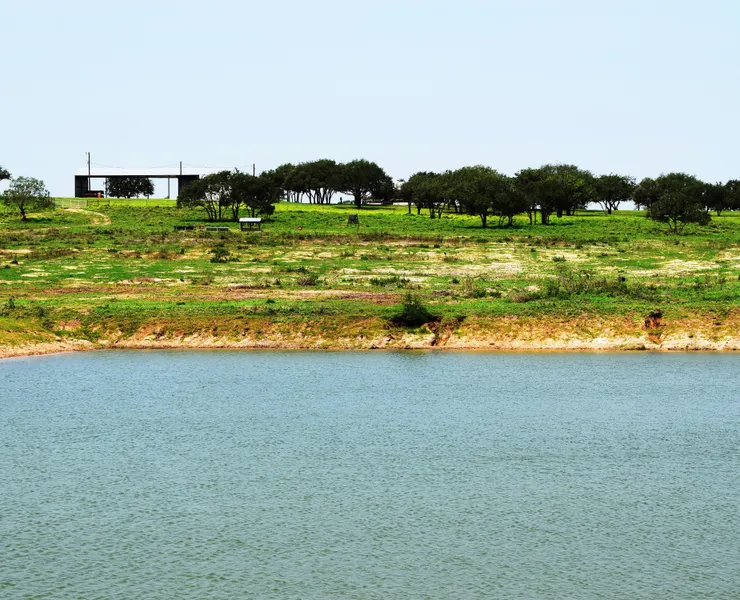 Ranch Home / lodgings- A brand new 2 bedroom, 1 bathroom ranch home with covered wraparound porches and approximately 1,900 square feet under roof, was constructed in 2014. This home is situated on top of a beautiful oak tree covered hill offering scenic views of the large fishing lake and rolling valleys below. Being fully furnished and ready to move into- nothing is needed! There is a nice 3 bedroom, 2 bath mobile home with storage shed located on the west side of the ranch that could be used for guests.