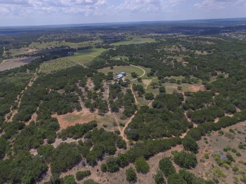 End of the road privacy with with ranch style home on hill with great view!Home features tall vaulted ceiling and concrete floors,nice front and rear covered porches, acreage is native with large post oaks,mesquites,cedars and some live oaks, excellent hunting,deer,turkey,hogs, senderos have been cleared for hunting, small fields available for food plots, 3 tanks with catfish,wet weather creek, fenced on 2 sides, hunters cabin, county water available, was part of 190 acres, surrounded by nice ranches, great place to getaway and go hunting!