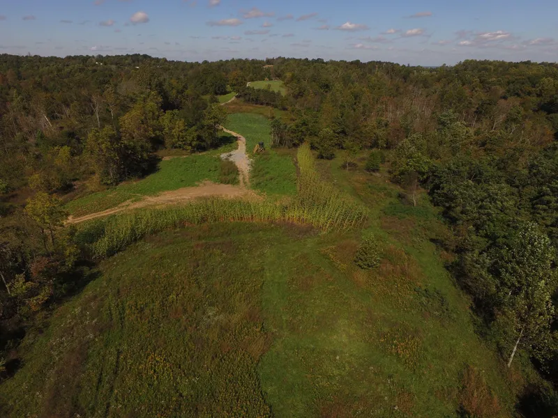 At the end of the road and with spectacular views is where you find this one. Enter through the gated entrance at the Northern end of the surveyed property. There are several good building sites right off the bat. The best location is just past the gate on top of the open plateau with an almost unbelievable view. The property has a main center ridge that runs to the southern end. The Sellers have done a lot of work preparing this one for the market. With the help of a habitat consultant, they have this one ready to go. There are two older farm ponds from back when this was a working cattle farm, numerous food plots, and three blinds in place. If your goal is to find an end-of-the-road property to build on and enjoy the outdoors, this is a great fit. Give us a call, let's take a look.