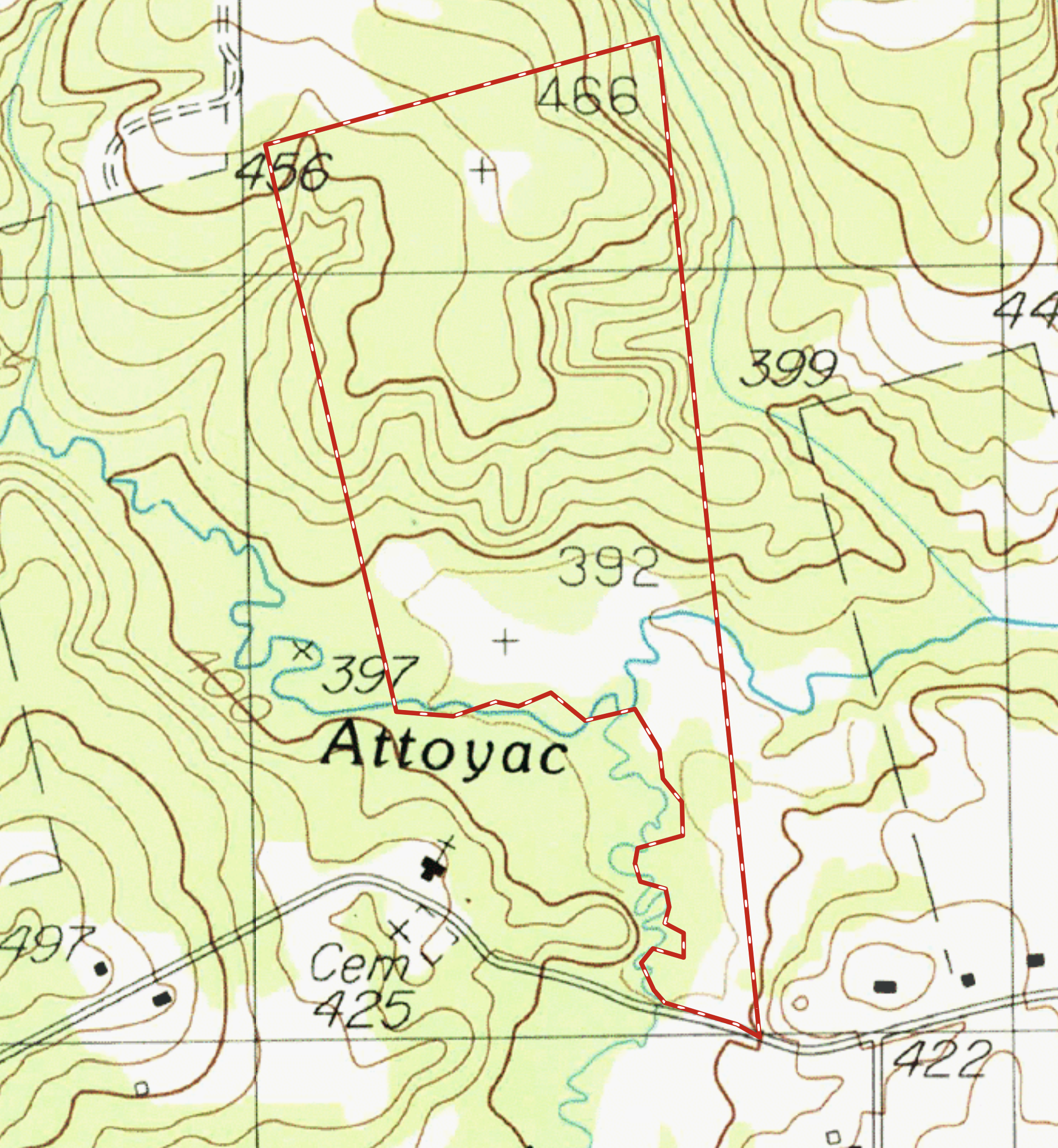 The start of the Attoyac River is on this property, providing fishing opportunities, as well as attracting large amounts of hog and whitetail deer (large game trails can be located all around this water feature). Several deer stands and food plots are located on the large hill in the back of the property off of the river bottom. As shown in the drone aerials, the property backs up to massive expanses of timberland, which lends to large game population and excellent privacy.