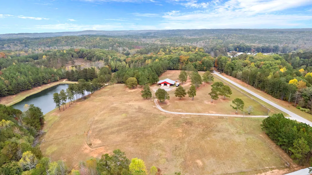 Welcome to 50.36 acres of pure West Georgia beauty - where rolling pastures meet wooded privacy, and your vision of country living becomes reality. Just 10 minutes from all the shopping, restaurants, schools, and conveniences of Carrollton, this property feels worlds away. A gated entrance and long stretches of road frontage open to expansive fenced fields, a striking red barn, and gently rolling land that invites endless opportunities. At the heart of the property lies a three-acre stocked lake - perfect for fishing, relaxing, or simply soaking in the peace of your own private waters. From the highest point, you'll find breathtaking panoramic views; on a clear day, you can even spot the Newnan water tower. Deer and turkey roam freely, making this a hunter's paradise as well as a working farm or family retreat. With most of the acreage cleared and portions of mature woods, the land is both functional and scenic. Water and electricity are already on site, and soil tests confirm multiple suitable homesites. Whether you envision building a dream estate with long-range views, running cattle or horses, cultivating crops, or holding land as an investment for future development, this property delivers. This is more than just acreage - it's a lifestyle. Space to breathe, room to grow, and the rare chance to own a piece of Carrollton that offers privacy and convenience in one.