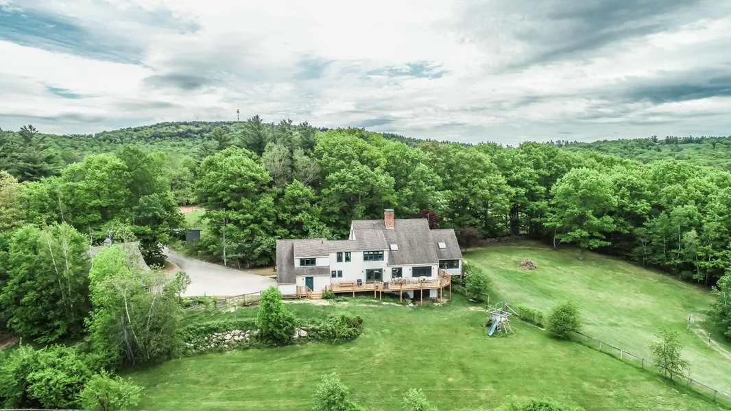 ENDLESS VIEW FARM-This center chimney timber frame colonial leaves ordinary at the front door & if privacy matters, it will check that box, too. The outdoor enthusiast will love the 13.8 acres, the pond, tending to the gardens & enjoying long walks along the gravel road & nearby trails. This timber frame home offers exposed timbers & beams, solid wood doors, tile & pegged oak floors in many areas & interesting architectural detail in every room & for the telecommuter, there is a large upstairs office with separate entrance. The open concept kitchen/dining offers a large center island & all the necessary appliances. Strategically placed windows & glass doors frame the splendor of NH's seasons & the entertainment-sized wraparound deck lets one inhale the stunning mountain views. Upstairs is a large master, walk-in closets & bath, two additional bedrooms & full bath. The third floor also has two rooms and as a bonus, the walkout basement is finished with a half bath. After a long day you can enjoy the hot tub or watch the birds from your sunroom. Horse lover in the house? The adorable 3-stall barn also has a large open area; for now, it holds tack & shop tools. There are fenced paddocks & the backyard is wrapped in no-climb fencing for kid and pet safety. Under 30 mins to our state capital, 10 mins from Route 202, & 45 mins to Manchester, making this a great central NH commuter location. Sq. ft approx., tax card being updated. Subject to seller find suitable housing.