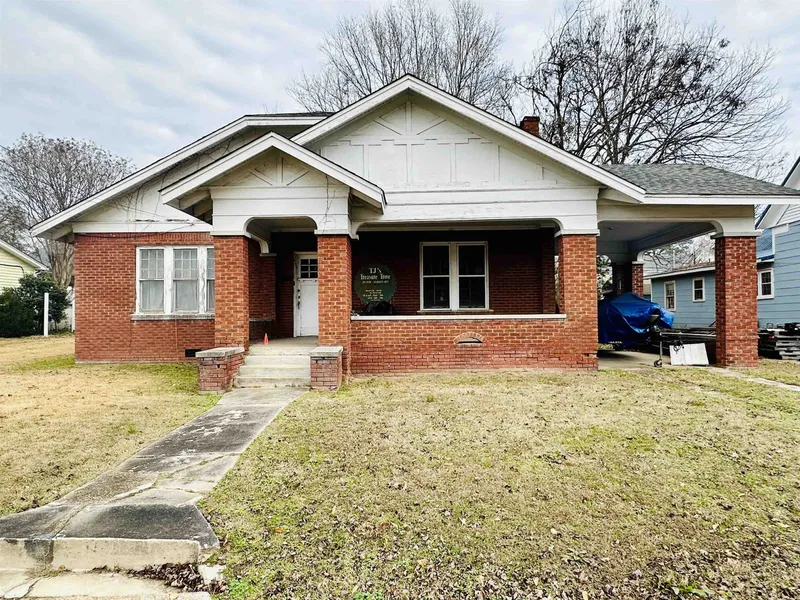 Unleash your creativity in this charming Tudor-style home, nestled in the heart of town! This blank canvas awaits your dream renovation, boasting an attached carport and detached garage. The sunroom provides a bright and airy space to relax, while the 3 beds and 1 bath offer ample room for growth. With its unique style and convenient location, this property is a rare find. Don't miss out on this incredible opportunity to make your mark and create your dream home! Can also be used as commercial.