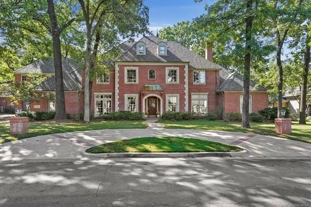 INCREDIBLE OPPORTUNITY TO PERSONALIZE this Grand English Manor in the exclusive gated community of Rockhurst, located in the coveted South Tulsa "miracle mile". Named "Laurwick", this Builder's personal home, built on over a half-acre (m/l) wooded lot, was designed for entertaining and built to impress. Awe-inspiring Entry with grand curved staircase & soaring ceilings, highlighted by a breathtaking crystal chandelier. The ballroom-sized Formal Living captures your amazement with 2-story ceilings, floor-to-ceiling windows & wood beams, plus a stately fireplace flanked by built-ins and wet bar. Double glass doors with beveled glass transom beckon into the masculine wood-paneled Study with a crackling fireplace and built-in cabinetry. The Formal Dining room with a double tray ceiling and a butler's pantry with sink connects to the heart of the home - the Kitchen & Family Room. The Chef's Kitchen features two Jenn-Air downdraft cooktops (one electric, one gas), double ovens, double dishwashers, updated Kitchenaid stainless appliances, tall custom cabinets with prep lighting on top of granite counters & butcher block area, and a large island with storage. A wine room, oversized pantry & freezer nook complete this space. The Primary Suite is downstairs, and upstairs are 3 more bedrooms, a 2nd office, library & flex room. There is a huge Gameroom with bathroom & walk-in closet that could easily make a 5th bedroom suite. Custom details throughout: extensive crown moldings, wood casement windows, solid wood doors, arched doorways & windows. The full-brick & stone Exterior features copper gutters & awnings, a circle drive & porte-cochere, & rear-entry 3-car garage. The detached 2-car garage includes an one bedroom apartment above (481SF per appraiser, not included in main house measurement) that could house guests, extended family or domestic staff. This is a well-built & well-maintained home with a NEW Grand Manor Roof just installed with Class 4 Impact Rated shingle.