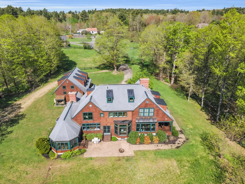 Step into this luxurious 66+ ACRE country estate and be greeted by decorative iron gates, pristine stone walls and a long tree-lined drive setting the tone for a property rich in design, amenities, and curated character. Prepare to be wowed from top to bottom by the 6000+ square foot custom contemporary home with detached 1BR/1BA apartment. The chef's kitchen boasts top-of-the-line wolf/subzero appliances, cherry cabinets, a sizable island, that overlooks a family room that seamlessly flows into a three-season sunroom. Enjoy meals with meadow views in the formal dining room, cozy up by the fireplace in both the living room and family room, or get work done in the casual dining area with office nook. Enjoy quite reading or conversation in the library/ music room with fireplace and access to covered deck. Two half baths and a storage-centric mudroom with laundry complete the first floor. Upstairs, the magnificent primary suite awaits with a sitting room, full bath, and access to a private 3rd floor dressing/office/bonus room with a half bath. Two additional large bedrooms, each with private baths, complete the second floor. Outside, a mahogany covered deck overlooks a babbling brook, while a paver patio sets the stage for entertaining.