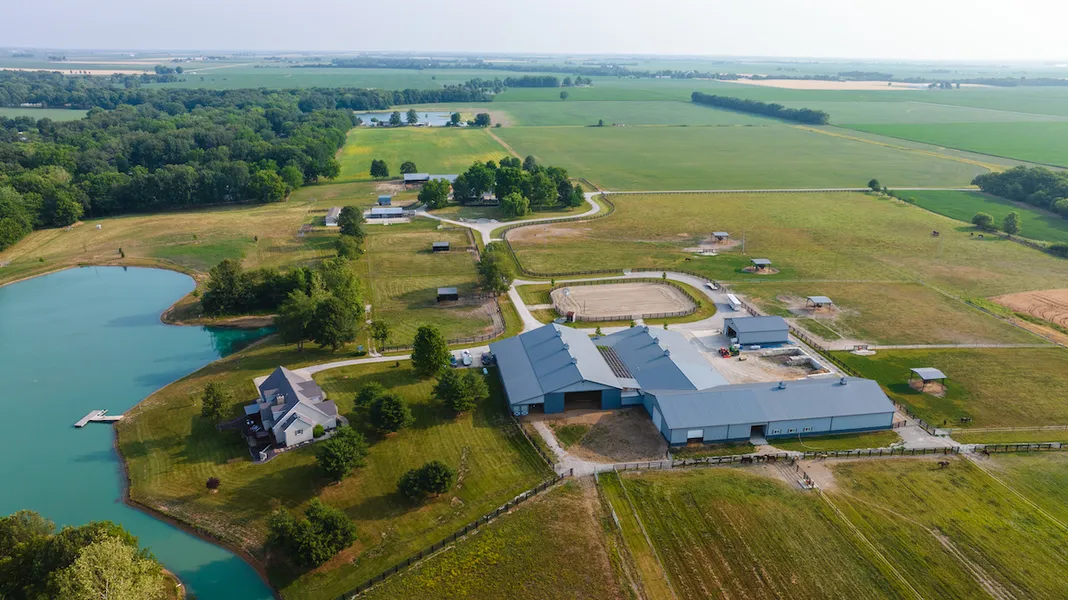 SELLER FINANCING AVAILABLE!! Here is a magnificent property that offers a luxurious custom-built brick home, exceptional equestrian facilities, ample pastures, and various recreational opportunities. Situated on expansive grounds, this estate presents a good investment opportunity with the potential for good income with the horse boarding facilities. At the heart of this property is the exquisite 4,000-square-foot brick home, meticulously crafted with attention to detail. The residence boasts a blend of elegance and comfort, featuring spacious rooms, high ceilings, and stylish finishes. With its thoughtfully designed layout, the home offers a seamless flow between the living spaces, creating an inviting atmosphere for both relaxation and entertainment. For equine enthusiasts, the property provides a comprehensive equestrian facility that will satisfy the most discerning riders and trainers. The estate features 24 horse stables, meticulously maintained and equipped with modern amenities. Additionally, the hot and cold wash stalls ensure top-notch care for the horses, while the tack rooms offer convenient storage for equipment and gear. This allows for year-round training and events, regardless of weather conditions. Adjacent to the arena, there is dedicated office space, providing a convenient workspace for managing equestrian activities. The equine farm also offers a range of outdoor amenities, including 14+ pastures for rotational grazing. This setup ensures the horses have ample space to roam and graze, promoting their overall well-being. Nature enthusiasts will delight in the stocked lake, which is absolutely loaded with bass, catfish and bluegill. The owner feeds the fish from the dock every day, and that is a sight to see as the huge catfish come to the dinner bell! Furthermore, the expansive grounds offer opportunities for hunting and horseback riding, providing endless hours of outdoor recreation. Overall, this equine farm combines a luxurious living experience with exceptional equestrian amenities. With its potential for positive cash flow and return on investment, along with its natural beauty and recreational offerings, this property truly epitomizes the ideal equine lifestyle. Boarding facilities include: 24 stalls with swing-out feeders and rubber mats, and all with automatic waterers, concrete aisle ways, 2 hot and cold wash stalls, grooming areas, 4 tack rooms, 60x100 indoor arena with a custom raised viewing area with heat and AC, 60x20 commodity area, 60x60 round pen with slanted wall, office space, water and electric throughout, custom doors, easy access to multiple pastures,14 pastures for rotation, some with vinyl fencing, multiple areas for trail riding, fiber optic phone, internet and tv, bathrooms, 60x40 indoor paddock with automatic waters, 60x50 indoor paddock with automatic waterers, 24x50 indoor paddock with automatic waterer. The entire main barn is heated except the indoor riding area. There is a security camera system and a sound system throughout the main barn and a fly mist spray system in the main barn. Two 12 x 22 foaling stalls, reproduction exam and breeding area,100 x 200 outdoor fenced sand riding arena, 4 rail wood fencing, 10 covered hay feeders in paddocks with automatic waterers. The potential uses and income sources include over $20,000 monthly from boarding/caretaking. This is a turn-key boarding facility. Barns and stables could be converted into shops and storage for farming operations. The farm would make a great subdivision location and use current barns as common areas. Livestock operation potential, rental potential to a trainer or trainers. Great investment that provides a positive cash flow. House Features: Just shy of 4,000 sq ft of living space with 4 bedrooms and 4.5 baths, a full finished basement with game room and living space, an open floor plan, hardwood floors, vaulted 9 ft ceilings, geothermal heating and cooling, stone wood burning fireplace, hickory cabinets with Corian countertops, breakfast or dinner bar, dining room, large closets, game room, breakfast nook, basement with outside access, large rooms, 3-car attached garage with electric openers, beautiful landscaping, water softener, central vacuum, spacious primary bedroom and custom primary bath with many unique features. New screened-in porch overlooking lake, hot tub, new landscaping and lighting around the house, gas fireplace. The farm features 30 acres in 14 fenced pastures to rotate grazing. Multiple areas to trail ride, a stocked 3.5-acre lake with aeration system and a creek. Mineral rights included. Well and city water, 600 amp electric service. Additional features: 1 heated 50x40 machine shed, 60x60 storage building, 50 amp electric and water hookup with sewer for RV hookup. Contact listing agent Josh Malone today to schedule your private showing of this impressive equine property.