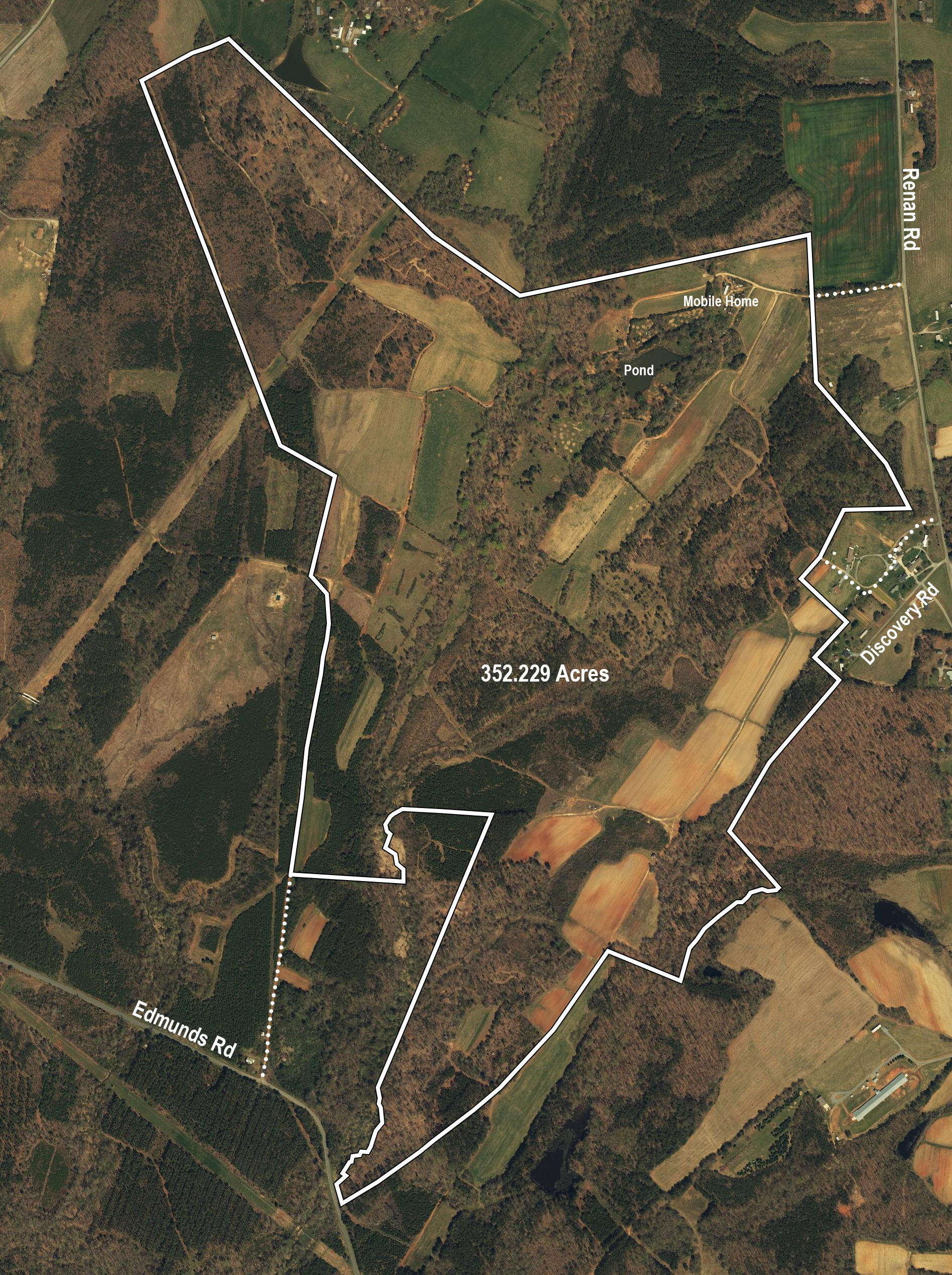 Selling for the Estate of Alvin Nathaniel Greene. 352 acres, more or less, on Renan Rd in Pittsylvania County. Farm enjoys approx. 125 acres of open land with the balance is a mix of pine and hardwood from natural to thinned to cutover. 128' of frontage on Edmunds Rd plus three deeded accesses (1 on Edmunds Rd and 2 on Renan Rd). Several scenic creeks traverse the farm, and an old log cabin (great restoration project) surrounded by large oak trees sits on the bank of a one acre pond. Other buildings include a single wide mobile home on the property, old home place, tobacco barn, and several old barns and outbuildings. An extensive network of farm roads and trails allow access to nearly every part of the farm. Very private - ideal for farming, grazing, hunting, and recreation. Farm will sold as a whole and not offered in tracts.