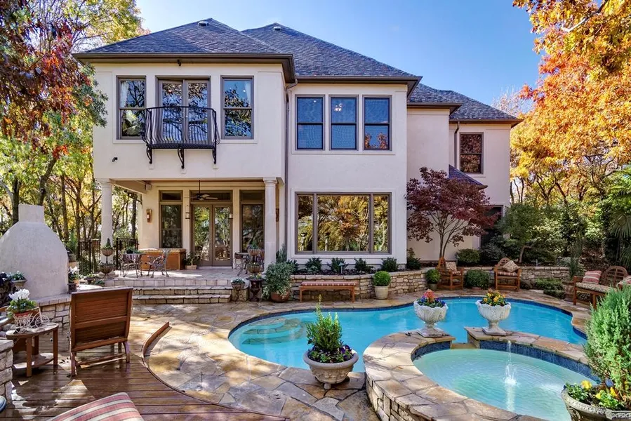This rare offering encompasses 1 acre of spectacular native trees with an extraordinary 2 story home sitting on a hillside. Extensive attention to detail & craftsmanship throughout. Wine cellar with custom built wine racks holds up to 80 bottles. Great room opens to gourmet kitchen with professional appliances. Spacious Master Suite with private coffee bar. Upstairs media room doubles as game room or office. Lagoon style pool & spa.