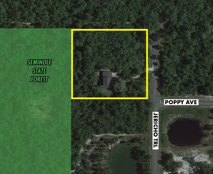 One-of-a-kind property strategically located at the end of Jericho Trail, abutting the 25,812-acre Seminole State Forest Wildlife Management Area, providing the feel of a vast territory ranch without the maintenance while still being just 15 minutes from a Publix grocery store! Located within the front section of the Royal Trails community providing convenient access to Hwy 44, Eustis, DeLand and Sanford.