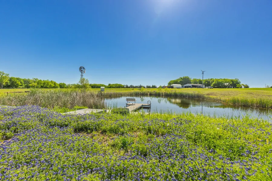 Escape to your own private paradise with this stunning 29.3-acre secluded tract, offering complete privacy and tranquility. Nestled amidst beautiful Texas landscapes, the property features a serene fully stocked pond adorned with vibrant blue bonnets, providing the perfect backdrop for peaceful relaxation. This unique property is fully horse fenced, ensuring security and privacy, and comes with its very own working windmill, adding a touch of rustic charm. For outdoor enthusiasts, a dedicated skeet shooting range offers the ideal setting for some fun and relaxation. The property includes a spacious 2400 sq. ft. workshop, equipped with a grand wood-working area, perfect for crafting, storage, or other hobbies. Complete wall mounted air lines and 110 and 220 power. Built in twin air compressors included. A beautiful Austin Stone 450 sq. ft. greenhouse offers endless possibilities for garde...