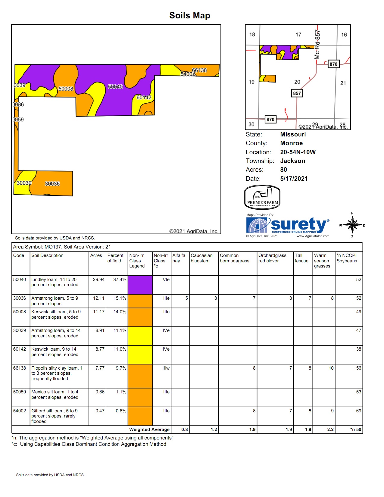 Search for detailed parcel information including; Elevation & Vegetation Maps, Ownership Information, Detailed Parcel Information, Crop History Map, Soil Survey Productivity Data, and more.