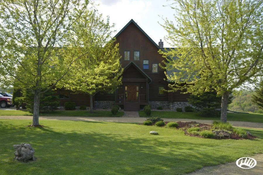 Drive east out of Arcadia and climb the hills to Montana Ridge and experience Wisconsin in a way few ever get a chance to see. This custom log home sits atop a ridge and has views for miles from the great room. A grand fireplace accents a beautiful great room with open concept kitchen, modern appliances, and granite countertops. West facing, the sunsets are spectacular and natural light floods the home. Sit on your deck with a spotting scope and watch rutting bucks as they cruise a mile of top access field edge and then grab your gun or bow and drop into the deep coulees or sit in one of many blinds the owner has on the property. This property is massive and has been lightly hunted for years. In recent years this property has put out not two but three Boone and Crockett caliber bucks! Top and bottom access are a coveted feature in this part of the county and there is plenty! You will fin...