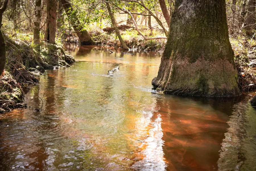 The terrain is diverse and well-balanced. On the front side, a large hill covered in mature hardwoods overlooks the creek bottom, offering the perfect elevation for a cabin or hunting camp. On the back side of the creek, you'll find a 7-acre stand of mature timber, loaded with big white oaks, a deer hunters dream. With thousands of acres of uninhabited company-owned timberland surrounding and beyond this property, the whitetail deer hunting potential is off the charts. Also, the 5 acre portion of creek bottom before MilL Creek has grown back in natural regeneration, creating a thick area for bedding and refuge. Many game trails can be spotted in this section.