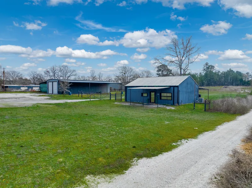Exceptional commercial opportunity in rapidly expanding south Tyler! Situated on approximately 4.587 acres, this versatile property is ideal for contractors, service-based businesses, or operations requiring office, warehouse, and equipment storage in one convenient location. The 960± sq. ft. heated and cooled office building offers a professional yet functional layout featuring a spacious lobby/reception area, private office, bathroom, and kitchen/break area. Stained concrete floors throughout provide a modern look with easy maintenance and long-term durability. A covered rear carport adds convenience for staff or company vehicles. Supporting the operation is a 3,200± sq. ft. shop with three 14-foot overhead doors, allowing easy access for large trucks, trailers, or equipment. The shop also includes a secured storage area and bathroom, offering added functionality and security. Two expansive 25’ x 80’ sheds provide substantial covered space for equipment, fleet vehicles, or materials. With ample room for expansion, outdoor storage, and maneuverability, this property delivers flexibility and efficiency in a high-demand growth corridor. A rare opportunity to secure acreage, office, shop, and covered storage all in one strategic location, just south of Tyler.