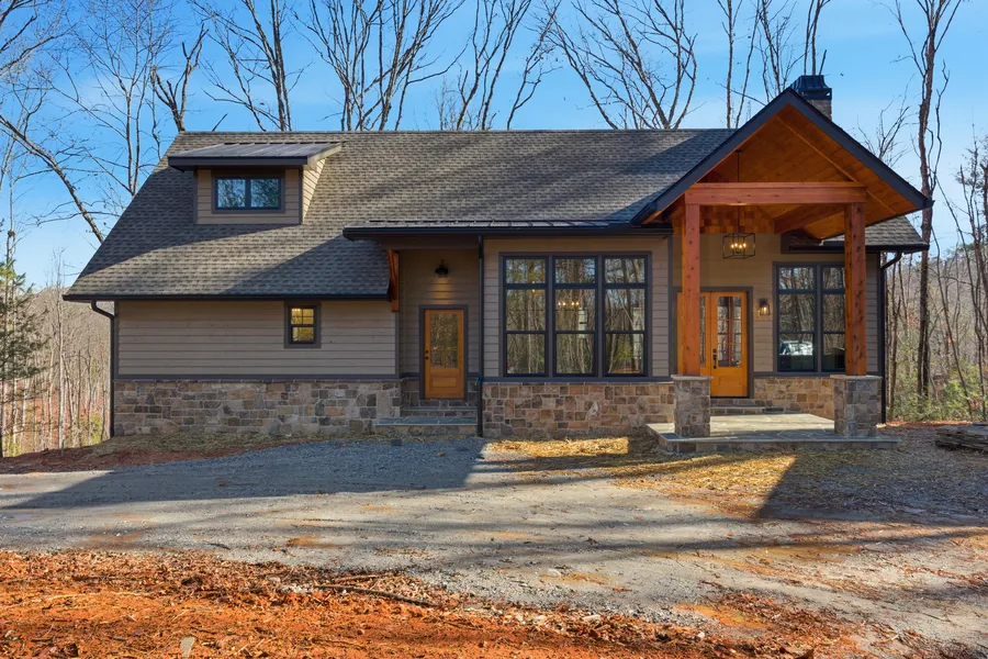 Perfectly positioned just minutes from Lake Burton and the Moccasin Creek Boat Ramp, this exceptional new construction home offers the coveted lake-and-mountain lifestyle without the Lake Burton price tag. Thoughtfully designed for both everyday comfort and elevated entertaining, the residence blends refined craftsmanship with relaxed North Georgia living. The main level welcomes you with soaring ceilings, striking beam details, and a dramatic stone fireplace anchoring the open family room. The kitchen flows seamlessly into the living space and features custom cabinetry, granite countertops, and a layout ideal for gathering after a day on the lake or trails. The primary suite on the main level provides a peaceful retreat, complete with a spacious ensuite bath and a custom walk-in closet. A well-appointed mudroom with laundry closet and a stylish powder bath add to the home's effortless functionality. The lower level expands the living space with a second family or game room, three additional bedrooms, and two full baths perfect for hosting guests, family weekends, or extended stays. Outdoor living is a true highlight. A large screened-in porch with Trex decking overlooks seasonal mountain views, offering a tranquil setting for morning coffee or evenings by the fire in fall and winter. An adjacent grilling deck enhances the home's entertainment appeal, while the professionally landscaped grounds feature a circular concrete driveway and a generous firepit area ideal for gathering under the stars. The exterior showcases durable Hardi-board siding with elegant stone accents, and covered parking provides a dedicated space for boat storage, allowing for quick and convenient access to Moccasin Creek's boat ramp just minutes away. Surrounded by some of North Georgia's most sought-after outdoor amenities boating, hiking, biking, and mountain adventures this home delivers the best of lake life and mountain living in one beautifully executed retreat. An exceptional opportunity for those seeking luxury, lifestyle, and value near Lake Burton.