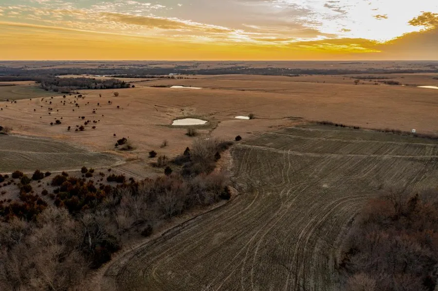Pulling up to the farm you will appreciate the well-maintained roads that provide great year-round access along the south and west property lines. At the pasture double gate entrance, you are at one of the highest points in the area. The 119 acres of pasture holds a pristine and very hearty stand of native bluestem and is about as clean as they will ever come. The spring-fed pond that is in the middle of the grass acres was recently cleaned out and a new dam was built in 2021. The second pond sits in the northeast of the pasture acres and allows for equal grazing throughout or if one looked to rotational graze. The perimeter fencing throughout the pasture is made up of newer 5-strand fencing with an added galvanized wire fence allowing one to all livestock from cattle to sheep. The interior cross fencing that separates the pasture from the tillable is a 4-strand barbed wire. The original homestead site sits in the southeast pasture area with the silo still standing tall. Also in the pasture is a small bowl formation that remains from a meteorite impact that took place in the late 1970s and was featured in a documentary in the year 2008.