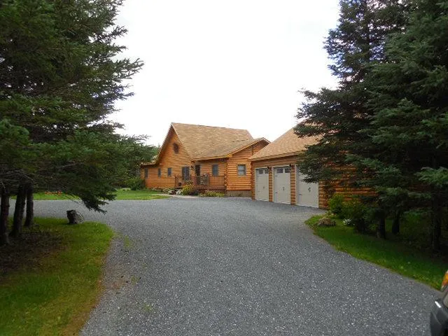 Executive, 3BR, 3BA, Northern Log Home in immaculate condition with matching detached 3 bay, log insulated garage with tons of storage overhead nestled in a Private Spruce Plantation. Open vaulted 22 foot ceiling and bright sunny rooms. Open spacious Great Room, with a cozy pellet stove, leading out to your private deck with beautiful western views and gorgeous sunsets! Master bedroom features a large over-sized walk-in closet and new master bath with jetted Jacuzzi and glassed-in, tiled shower. Kitchen features tiled floor, granite counter-tops, stainless steel appliances and island bar. Finished basement with full bath, entertainment room complete with pool table.