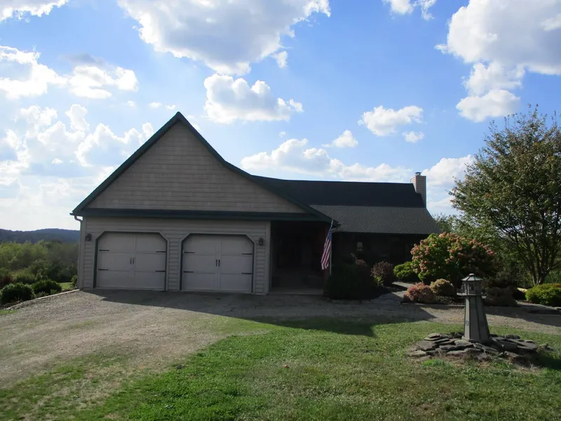 New York land with home, stocked pond, trout stream, views and pole barn for Sale: Country living at its' finest is what describes this property. With over 3200 sq. ft. of living space (including a finished basement), this 3 bedroom 2 1/2 bath custom built home is perfect for entertaining. Features include a gormet kitchen with appliances, dining area and large open living room with a beautiful stone woodburning fireplace. Vaulted ceilings and a very open and unique floorplan create a spacious but still cozy feel to the home. Built in 2005, the exceptional quality of both construction and materials is evident in and around every corner. A propane fired boiler with infloor radiant heat will keep you warm in the winter, while central AC keeps you cool in the summer. Water is provided by a private 100' deep well with an attached water conditioning system. The oversized attached 2 car garage is great for parking and extra storage. Walk outside onto the huge wrap around deck and the mountain view will take your breath away! Also included is a 40' x 80' "Morton" pole barn with a fully insulated shop integrated inside. It would be perfect to store all your "toys", and big enough to run a business out of.
