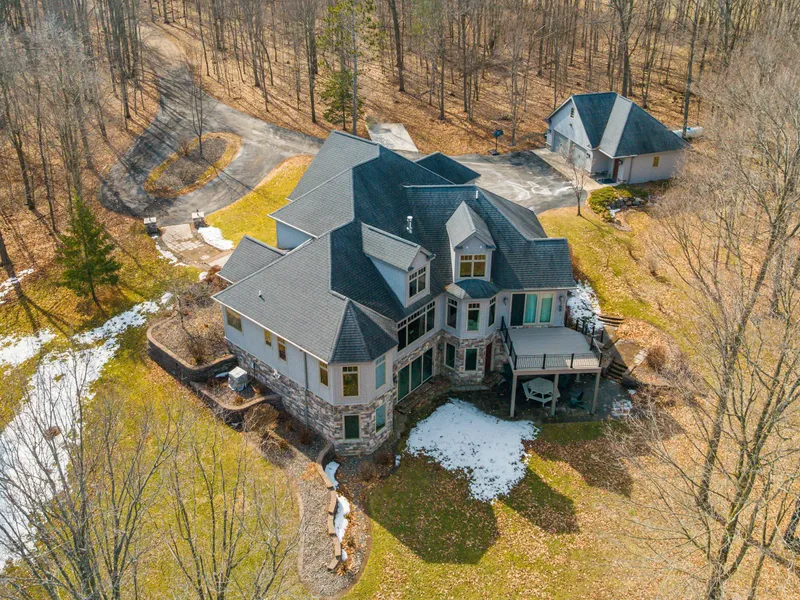 Nestled on over 32 acres sits this exceptional architecturally designed 5+ bedroom, 4.5 bath country estate. Located just southeast of Medford, this property offers a private setting with over 1, 000 feet of frontage on the pristine Little Black River and a direct border on the picturesque Black River Golf Course. Custom mahogany kitchen with quartz countertops, spacious walk-in pantry, central island, breakfast bar and high-end Bosch appliances. Dining room opens to sitting room with access to updated rear deck ideal for entertaining and enjoying the outdoors. Living room boasts vaulted ceilings and gas fireplace providing a warm and cozy atmosphere. Main floor primary suite is a true retreat with an elegant trayed ceiling, a large walk-in closet and en suite bathroom offering double sinks, whirlpool tub and a tile shower. A dedicated home office with built-in mahogany shelving and desk. The attached heated garage enters into a convenient mud room with tile floor and leads to the laundry room and fully equipped prep kitchen. The upper level features 9' ceilings with 2 bedrooms sharing a Jack and Jill bathroom while a third bedroom offers its own private bath. The finished walk-out basement with its 9' ceilings is an entertainer's dream featuring a large family/rec room, exercise room, a versatile bonus room and an additional bedroom with private bath. This extraordinary property combines elegance, functionality and natural beauty. The home features mahogany high impact windows, solid mahogany interior doors and 10' main floor ceilings complimenting the solid maple flooring. A spacious 2+ car detached heated garage provides ample storage space while recent updates include a new boiler system, patio door and refreshed landscaping. The diverse acreage offers a nice mix of wooded areas, open fields, pasture and beautiful river frontage. The Bosch custom-panel 36" refrigerator, custom-panel 24" freezer, dishwasher, convection oven, microwave, Maytag washer, dryer, refrigerator, oven, dishwasher, Culligan Medallist Plus water softener, wood window blinds and window treatments in the office, family room and living room are included in the sale price.