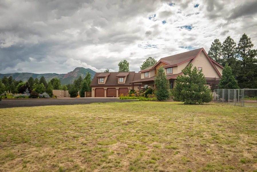 Looking for a Flagstaff Paradise home with the Golf Course Community standards and quality? This exquisite Mission Styled, CUSTOM home beautifully nestled on 2.5 Acres with mature Ponderosa Pines and the yard fully landscaped and designed for family fun. The home is fully guttered with copper gutters and quality railing in front. Fully fenced, Front Deck with Redwood under the covered porch. Top of the line Low E Dual Pane Sierra Pacific Window package, hand milled trim, with Hunter Douglas insulated/motorized blinds. Solid Alder wood doors, hand milled and distressed. Six inch wood trim. High-end exterior/interior custom dual color paint. Solid granite Counter tops. On-Demand hot water heater, 2 zone AC's 2 zone gas furnaces (upgraded for efficiency). See Supplemental for more info.