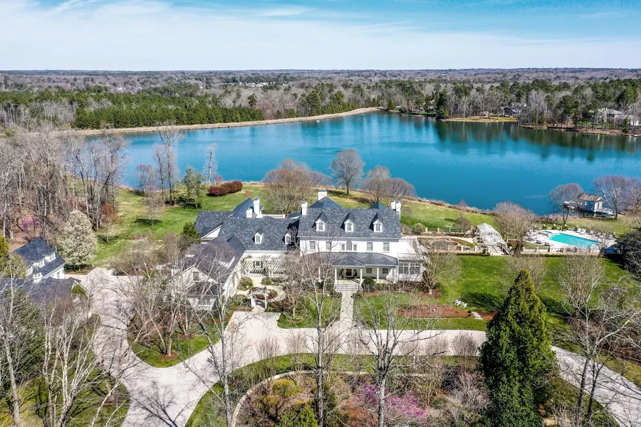 Exquisite gated custom built estate set on roughly 17 acres and privately nestled in the Rivergate neighborhood overlooking the Rivergate lake. This grand home offers every amenity, as no detail has been left undone. Wide foyer, beautiful formal rooms, gorgeous sunroom, multiple family room options all allowing for ideal entertaining from formal to casual. Stunning gourmet kitchen, w/ vast center island, designer appliances, butlers pantry. Incredible primary en suite with sitting area, dressing area, luxurious and large spa bath. Second level offers 5 plus spacious bedrooms, office space w/ built-ins, flex space. 9 bathrooms throughout, 11 fireplaces throughout, 11 car garage space on property. Full basement w/ handsome office, workout room w/ sauna and steam room, golf simulator room, kitchen, cinema. There is a guest suite attached to main house. 2 detached 2 car garages 1 w/ apartment. Detailed doorways, high ceilings, heavy mouldings. Detached basketball gym w/bath. Magnificent pool and pool house, lake dock w/ gazebo. Extraordinary view of lake from back of house, terraces w/ outdoor FP and seating, mature landscaping and gardens. This exclusive property is one of a kind.